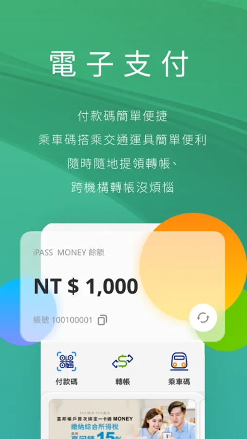 最方便的電子行動支付服務 - iPASS MONEY APP 以嶄新的樣貌與用戶們見面囉。提供多元的服務選擇、iPASS MONEY電子支付、乘車碼、生活繳費、跨機構轉帳...等,全新介面給用戶煥然一新的電子支付體驗!