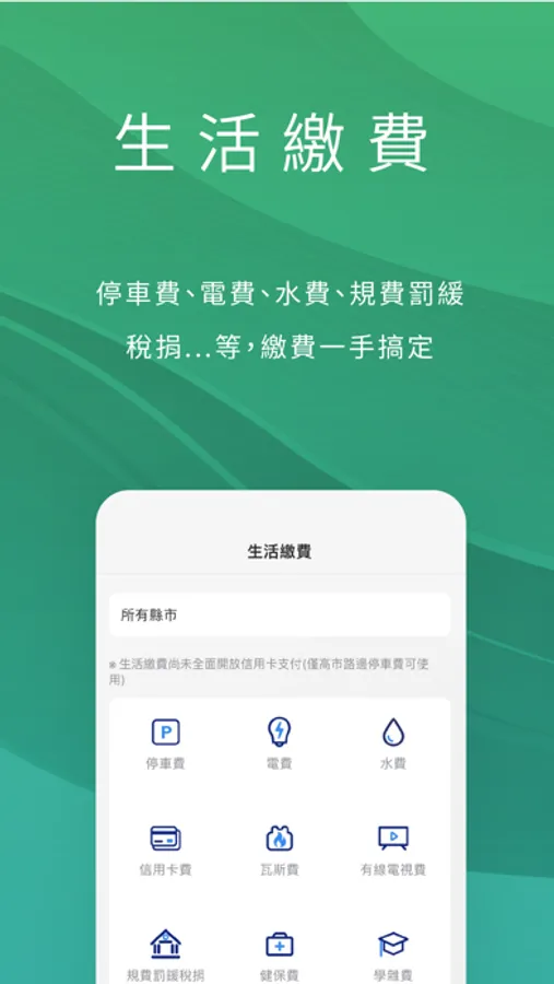 停車費、電費、水費、規費罰緩稅捐...等,繳費一手搞定