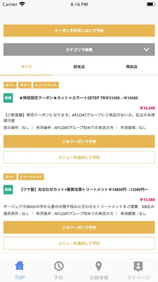 お得なクーポンが配信されます。ネット予約時にクーポン利用での予約も可能なので来店時もスムーズに施術頂けます。