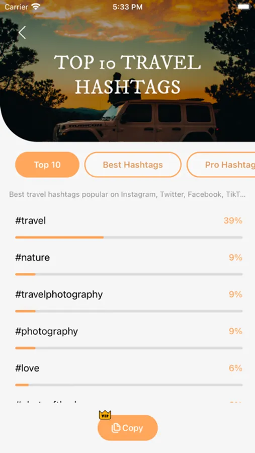 We provide you with 5 different categories of travel captions, allowing you to have more choices. Choose the best hashtag for your post by referring to the most popular hashtags recently!