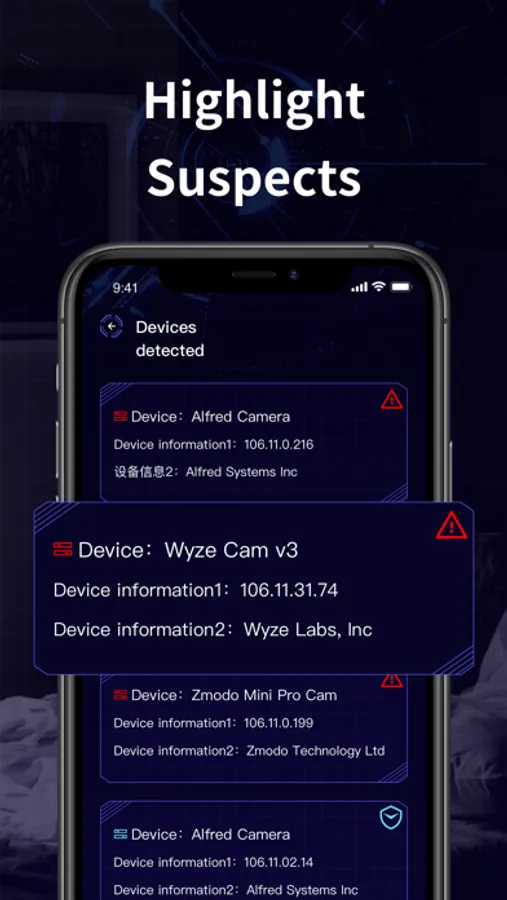 1. LAN device detection, analyzing suspicious electronic devices in the vicinity through network detection