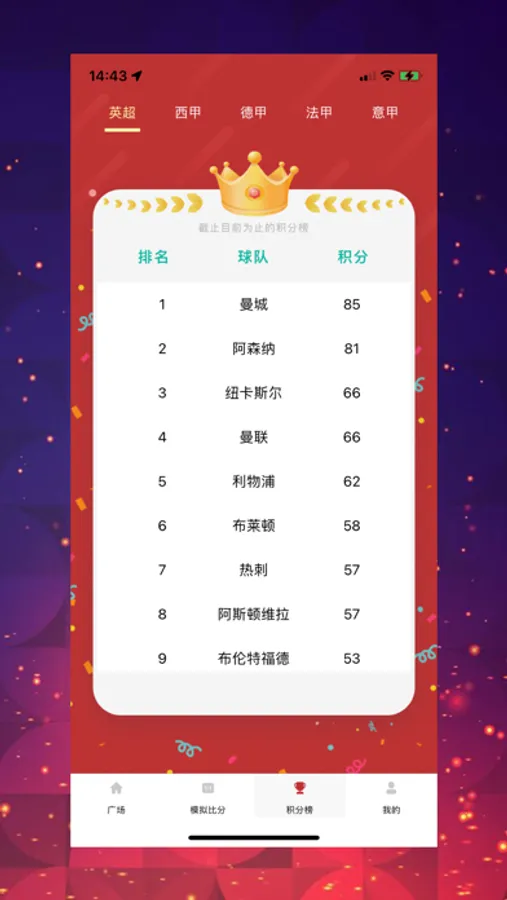 在这里,既可以知道足球相关的最新消息,五大联赛的积分排行榜,甚至还能模拟喜欢的主客场队伍的比分!