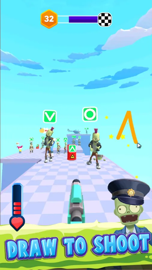 All you have to do is to draw the symbol on the head of enemies to shoot them and avoid them attacking you when they get close to you. Let's see how quickly you can draw!