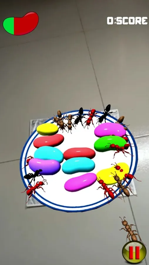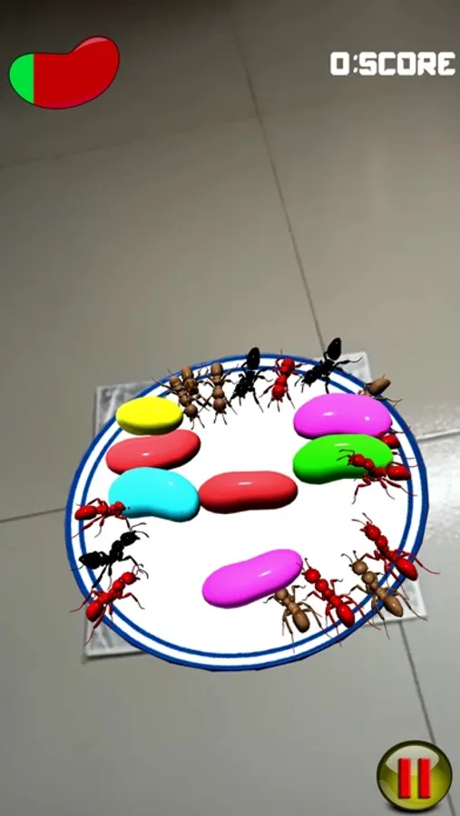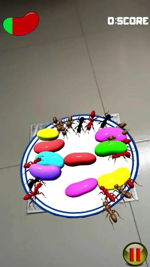 Once you place the plate filled with jelly beans the ants will start to come to eat the, find and tap on ants to smash them.
