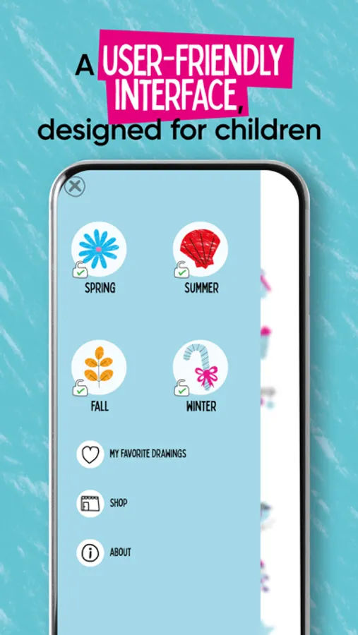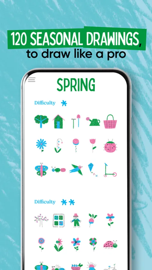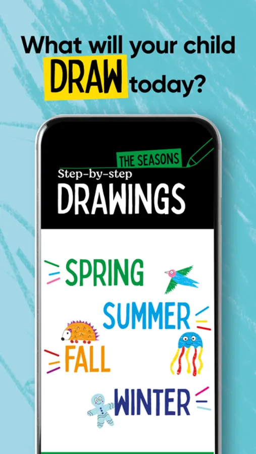 The app offers 120 seasonal drawings, to draw like a pro with graphics learned during preschool.