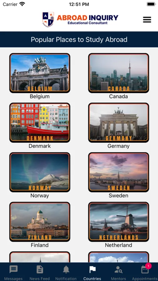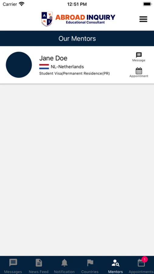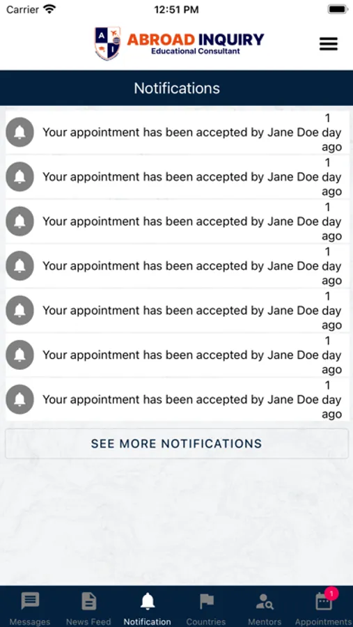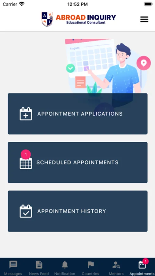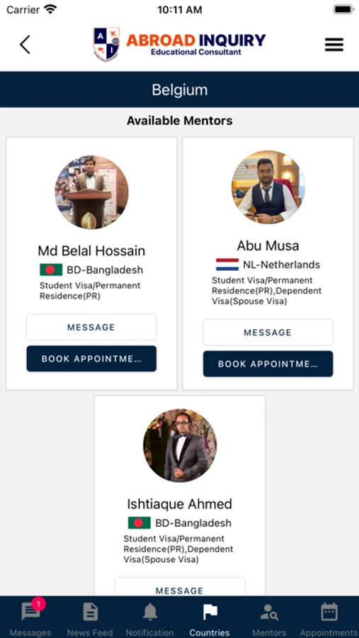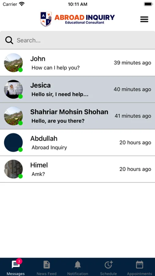 This app is made for Abroad Inquiry which is a higher study education consultancy firm located in Dhaka, Bangladesh (Please visit www.abroadinquiry.com). Students who are interested to go abroad to pursue higher education may use this app and get assisted by Abroad Inquiry mentors assigned for each country. This app features real-time chatting between students and mentors. Students can fill up the form to apply for higher education. Apart from that students may know about the popular countries across the world to go for higher education. If any student needs help from any mentor to apply for any particular university or to know any information, he can simply book an appointment with the mentor by using this app. Message and appointment booking feature comes with real-time push notifications to notify the users instantly.
