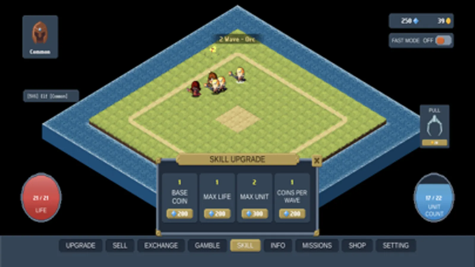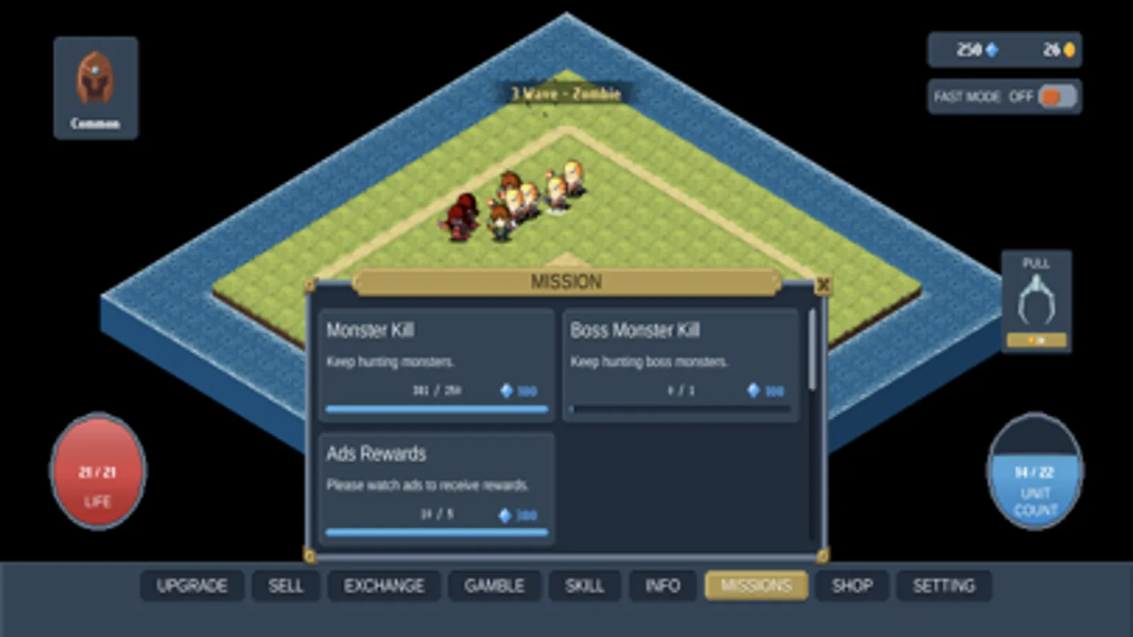 2. Press the pull button on the right to produce units and place them in the optimal position to defeat the monsters.