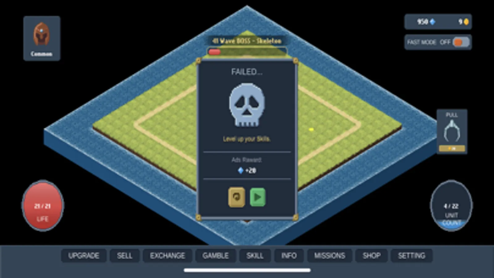 7. Collect gems through boss defeat, watching ads, and missions to upgrade skills.