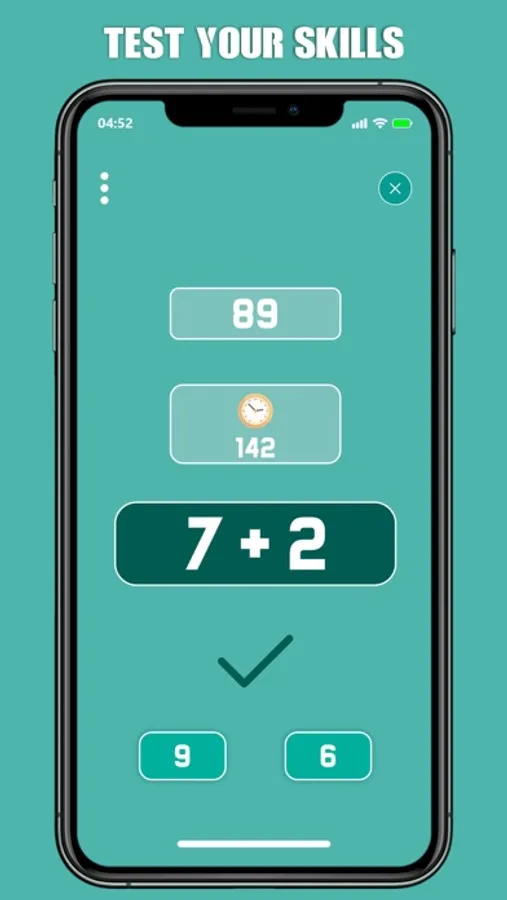 Math Test Game is speed-based math quiz game where a single incorrect answer ends the game. The easy mode shows addition equations whereas the hard mode can also include subtraction, multiplication & division.