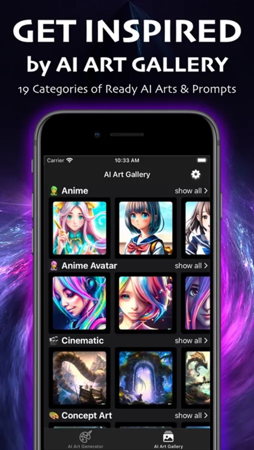 Includes 19 art categories (1 art per category for free) and ready prompts to try on your own. Also, you can save them on your device and do whatever you want.