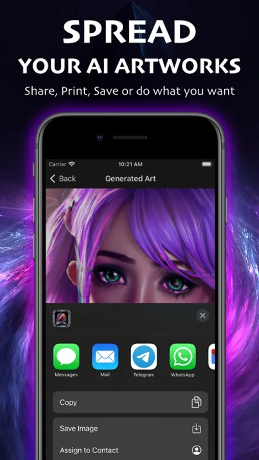 Whether you're an artist, designer, or just looking to create something beautiful, our A.I Art Generator App is the perfect tool for unleashing your creativity and exploring the limitless possibilities of art. Don’t wait! Try the app and experience the power of AI art generation process by yourself.