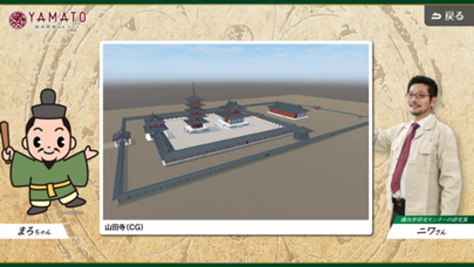 それぞれの文化財の魅力を学芸員が詳しく解説し、AR(拡張現実)やVR(仮想現実)などのIT技術を使って、かつて存在していた建物を目の前に再現させます。