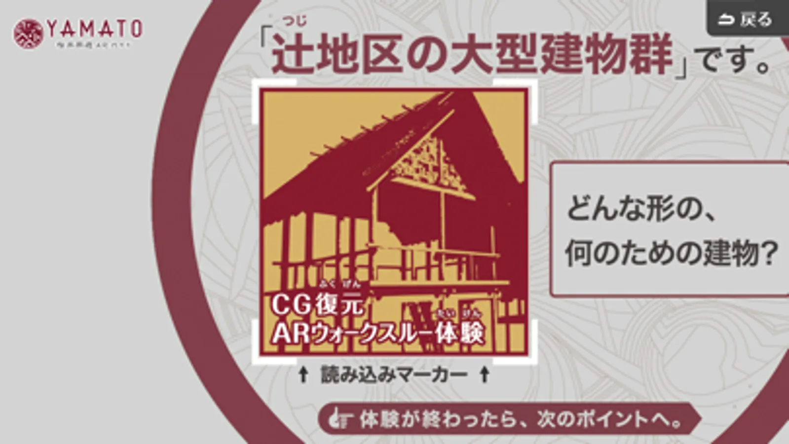 「YAMATO 桜井周遊ARガイド」は、桜井市内にある史跡 纒向遺跡、特別史跡山田寺跡などの文化財を解説し、現地での新たな体験を提供するアプリです。