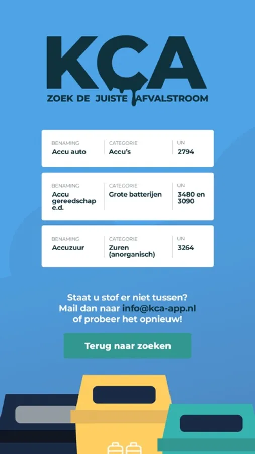 Zoeken tussen de lijst van meer dan 500 stofnamen naar de juiste afvalstroom voor klein chemisch afval