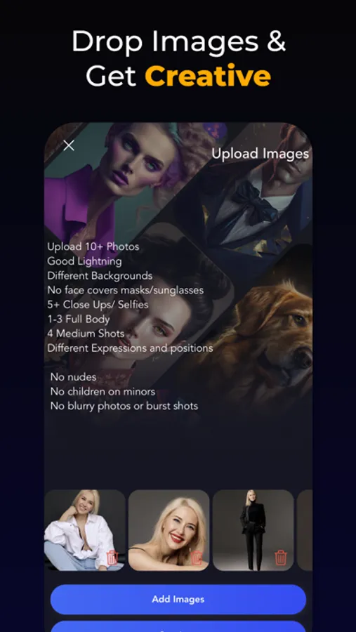 To start upload 10+ photos of you, mostly close ups but also a few full body and a few medium shots. Tap create my avatar and let the AI train your model, this can take anywhere from 10 to 60 minutes. After that you will get your results.
