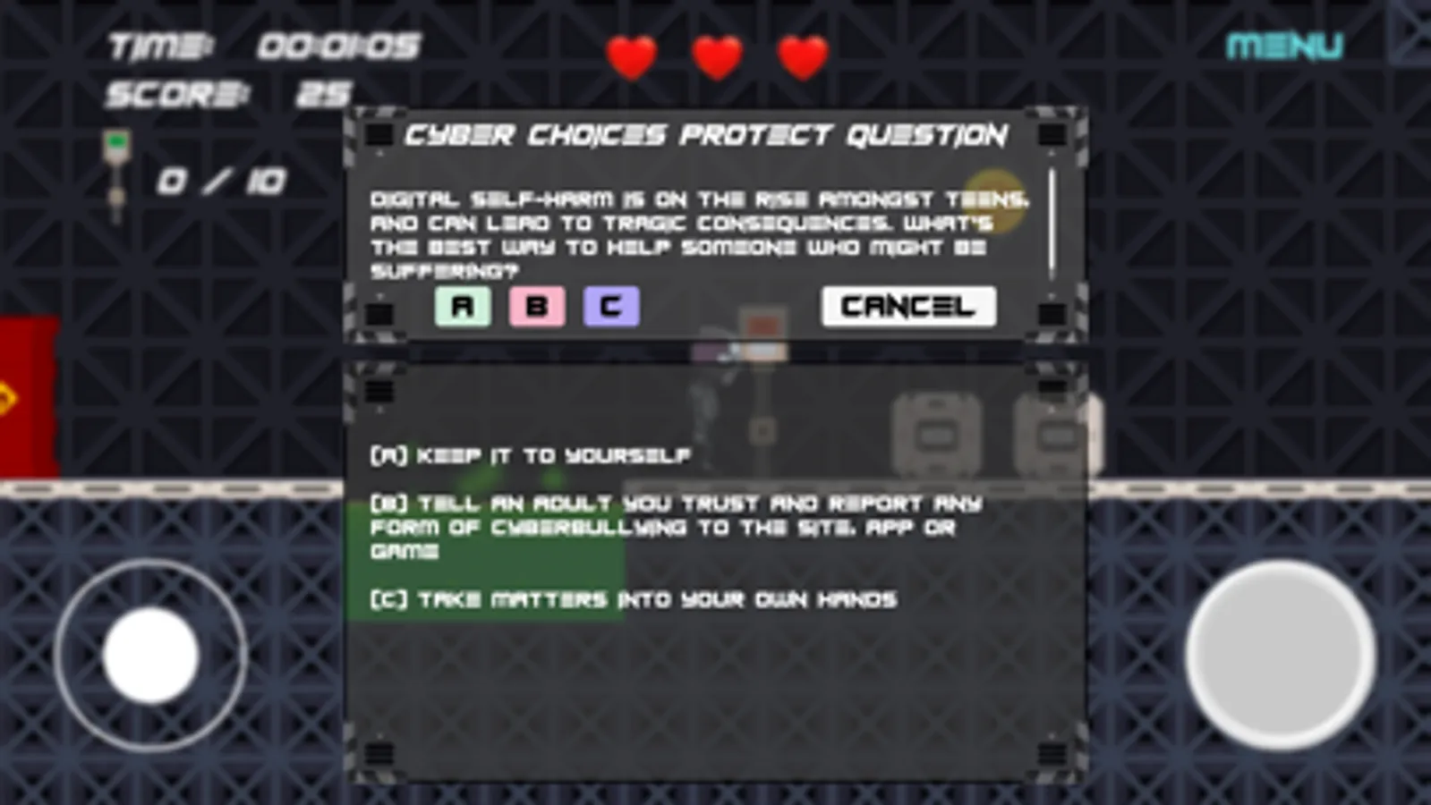 Save your progress and repeat game play as often as you like to develop your knowledge about cybercrime and the Computer Misuse Act 1990, and prove yourself as a Cyber Choices Champion. Compete against players across the UK for a place at the top of the leaderboard.