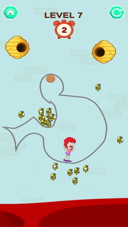 Girl Rescue is a Draw save games. You draw one line with your fingers to create walls that protect the Girls from attacks by bees, mosquitoes and birds in the hive. You need draw to save the Girl with the painted wall for 10 seconds during the attack of the bees, hold on and you will win the game.Use your brain to save the Girl.