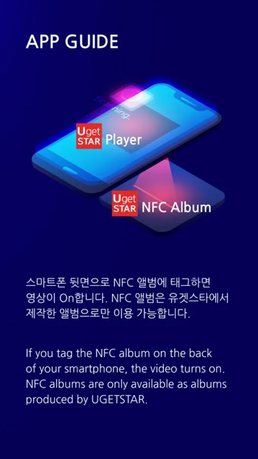 UgetSTAR 서비스는 NFC, Video Player, VOD Streaming, CDN의 기술 노하우를 바탕으로 NFC Album Mobile Video Player를 런칭했습니다. 기존 CD/LP 시장의 단점을 보완하는 동시에 영상을 통한 나만의 앨범, 영상광고, 영상마케팅을 하는 사업을 전개하고 있습니다.