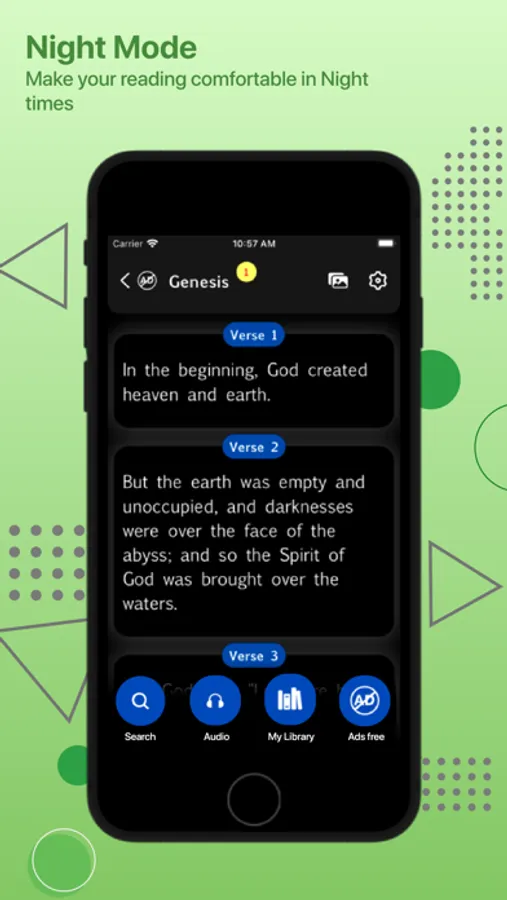 Dark Mode: Make the bible reading in the dark mode with text inversed in white color and background color in black.