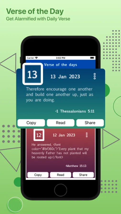 Notification Alarm: Set the verse on a daily alarm that one is notified at a particular time.