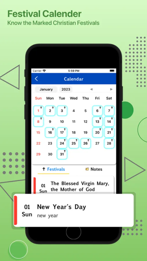 Festive Calendar: Let us know about all the Christian festivals and events in this Calendar. Instantly share an image with an attached verse to others in WhatsApp and save it in Gallery.