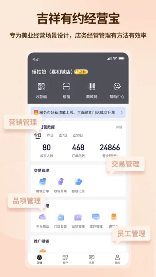 1. 员工管理:添加员工、查看员工服务销售数据;