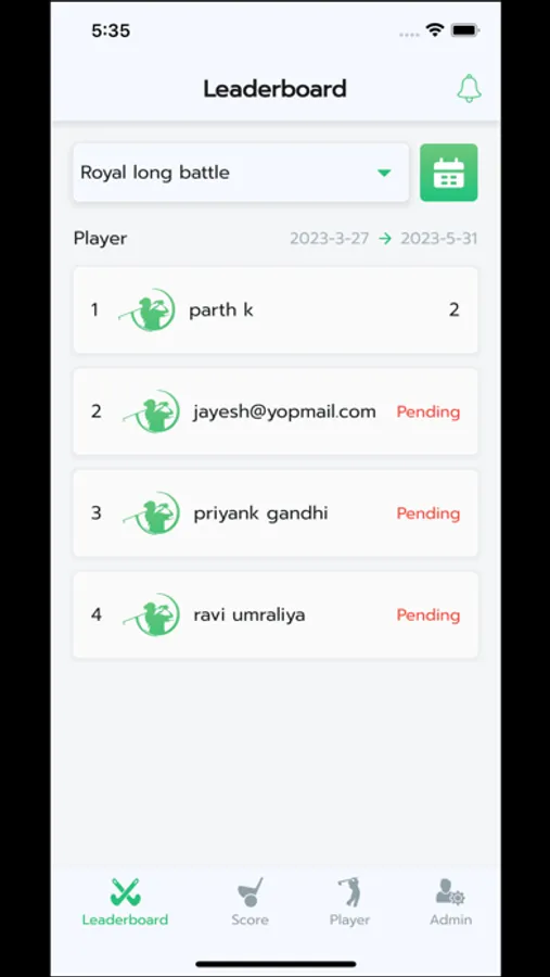 Our application allows you to create and manage private golf championships between friends in a simple and fast way. With our application, you will be able to keep track of the results and share your successes with your colleagues, turning your rounds of golf into an even more exciting and fun experience.