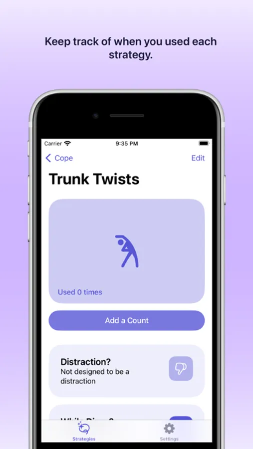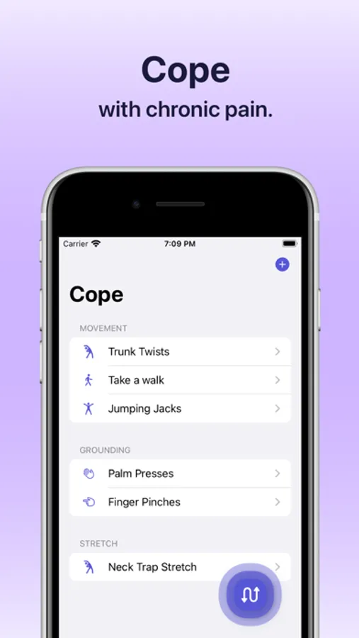 In many cases, chronic pain can only be improved on a function first model. Patients often use coping strategies to pace through pain flares and difficult situations. Cope is an app that aims to allow users to keep track of strategies they find helpful and choose them quickly when needed.