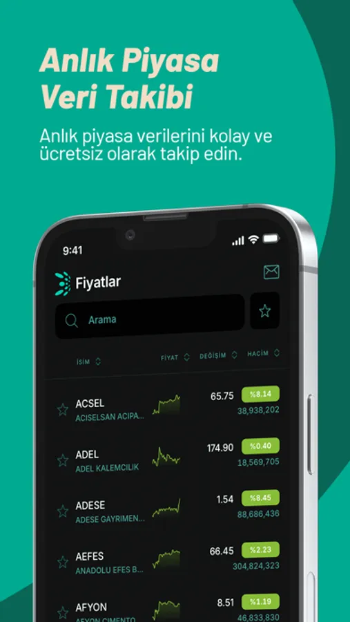 • Anlık piyasa verilerini kolay ve ücretsiz olarak takip edebilirsiniz.