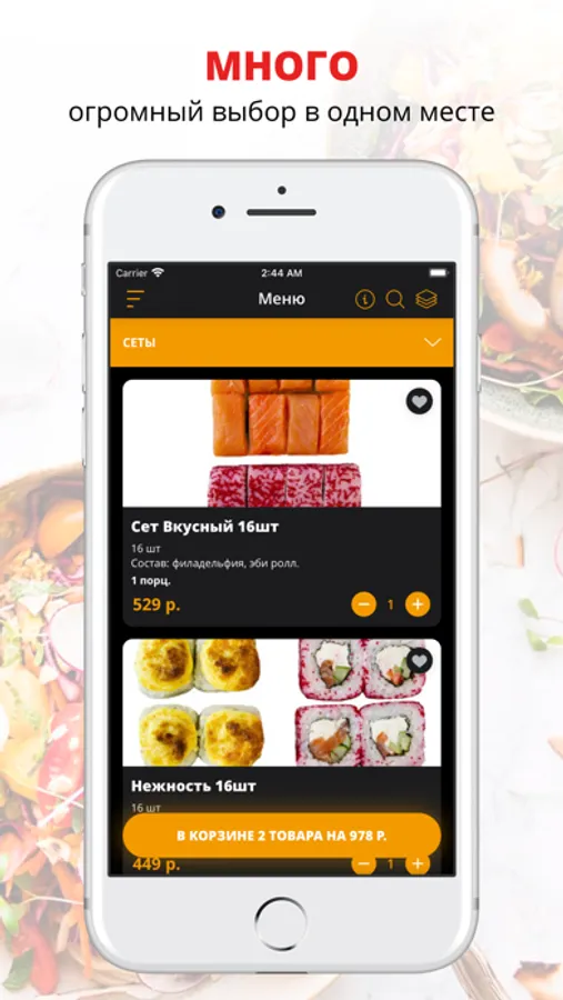 Скачивайте наше приложение, оформляйте заказ и наслаждайтесь любимой едой, где бы Вы ни были! Приятного аппетита!