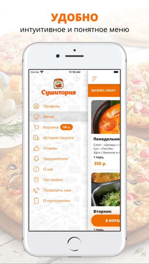 Сушитория - доставка роллов, пиццы и закусок по городу Ковров. Закажите доставку через наше мобильное приложение и вы останетесь довольны качеством и вкусом наших блюд.
