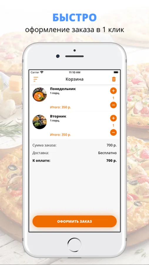 удобная корзина и быстрое оформление заказа,