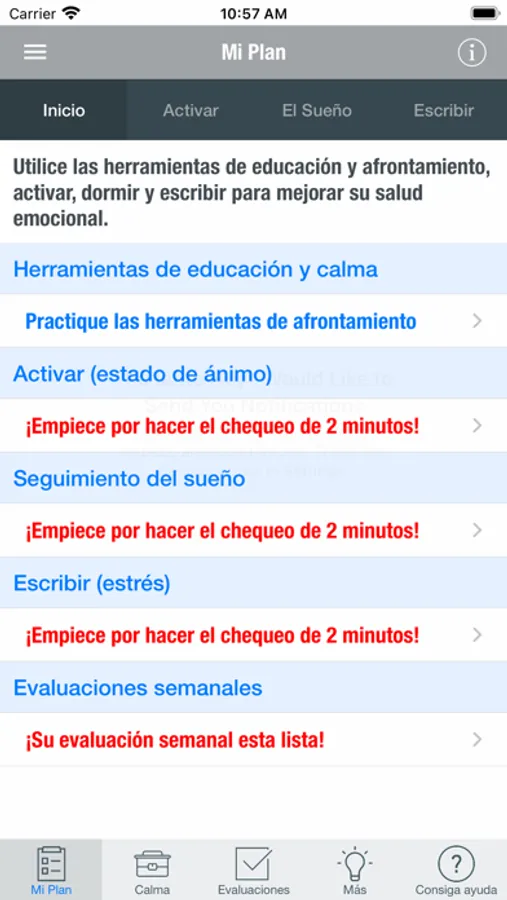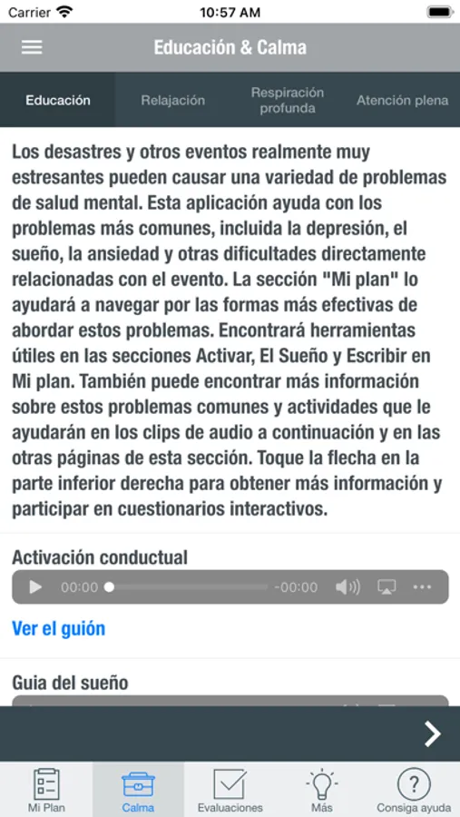 - Fácil acceso a herramientas móviles de mejores prácticas que respaldan la recuperación emocional y la salud en varios ámbitos, incluidos el estrés, la ansiedad, la depresión y el sueño.