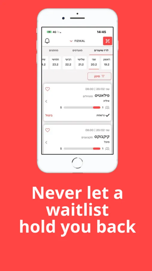 חדש! מהיום כל הקשר עם מועדון הספורט והסטודיו שלך אצלך בטלפון החכם.