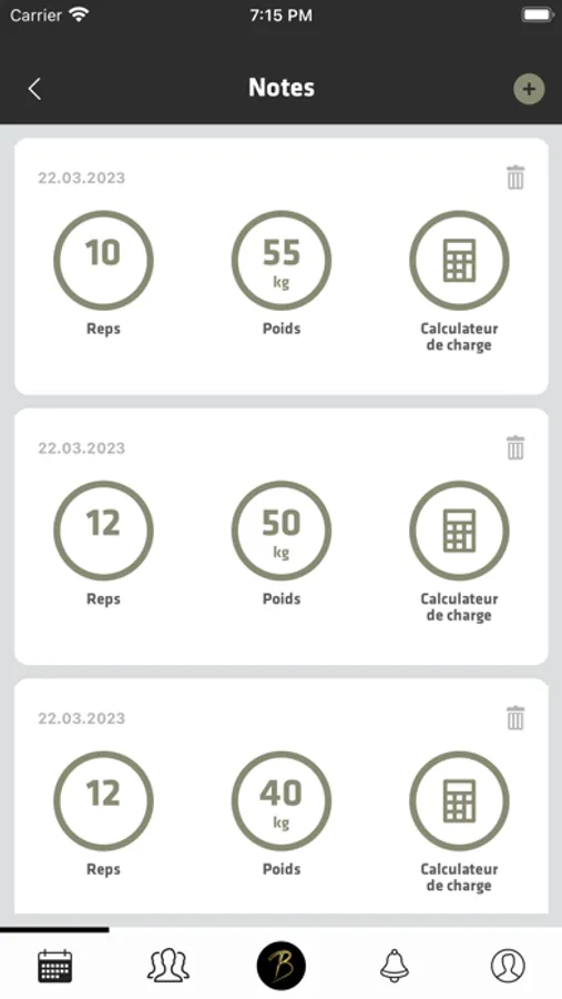 D'autre part, vous aurez également accès, dans votre séance, à un calculateur de charge et vous aurez la possibilité d'ajouter des notes pour que votre coach puisse s'informer sur votre évolution, vos ressentis et vos difficultés. Pour terminer, vous retrouverez toutes les informations vous concernant sur votre profil.