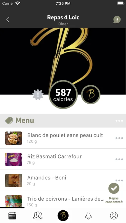 Sur celui-ci vous retrouverez la planification de vos repas et séances créés en amont par votre coach, en réponse à vos objectifs.