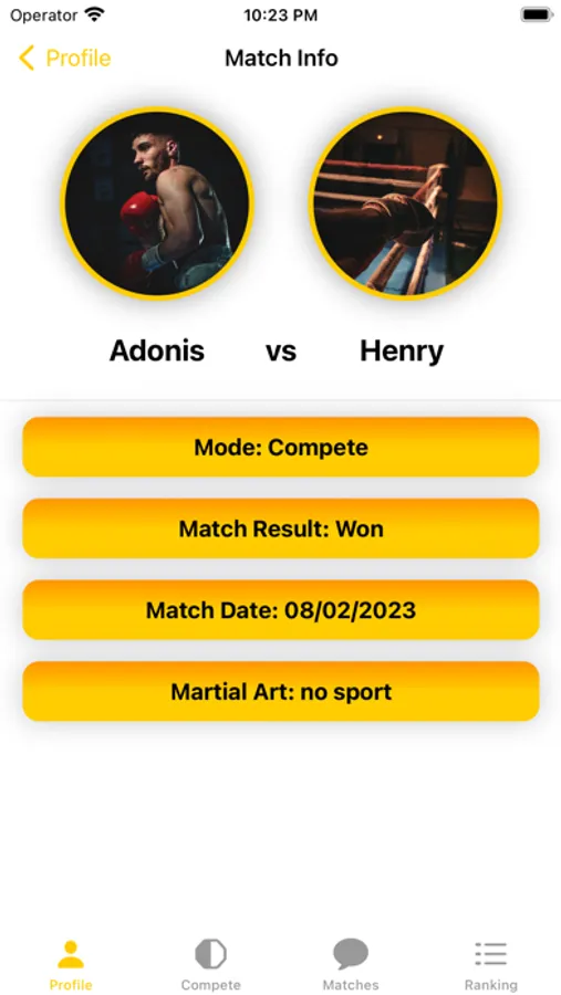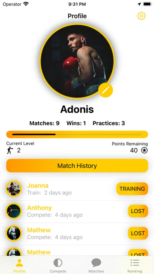 - Intuitive user profiles, where fighters can create and view their previous trainings/sparrings.