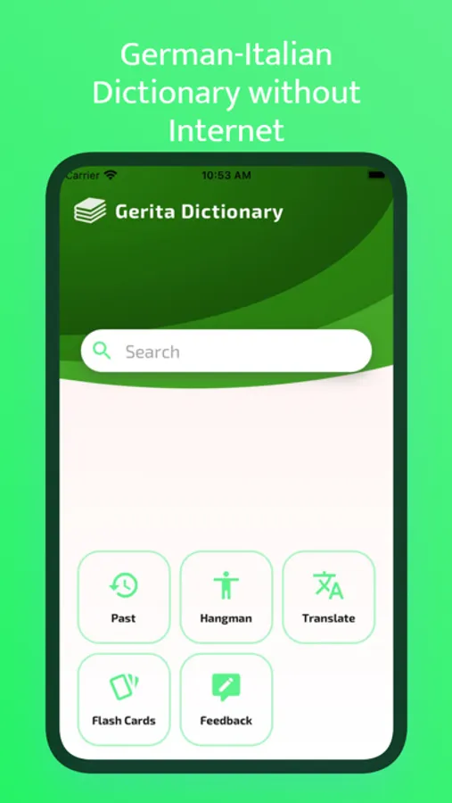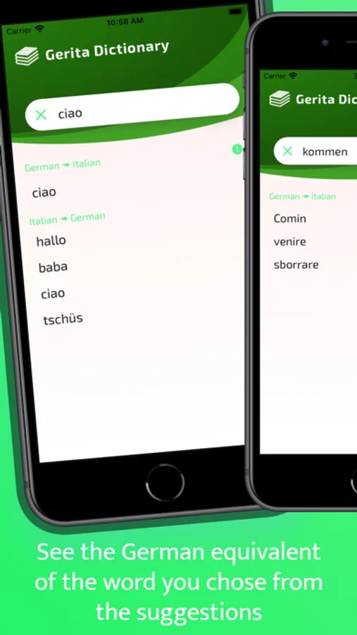 GERITA is a bidirectional dictionary application. If you wish, you can translate words from German to Italian, from Italian to German, without the need for the Internet. With its convenient and functional interface design, it is easy to use and at the same time, the searches you have made give very fast results. You can see the searches you have made from the search history and translate again. You can use this dictionary to socialize, learn, and use it in all areas you need in your travels and business trips.