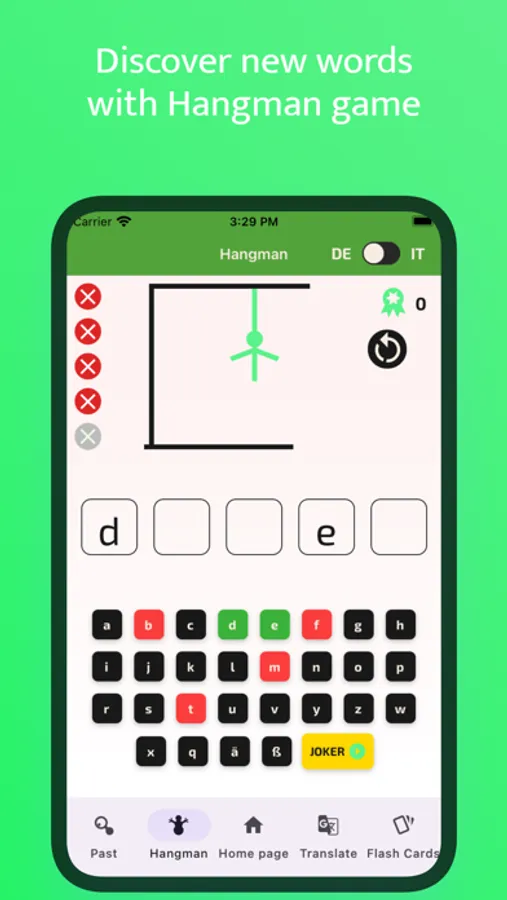 Apart from the word translations in the application, there is a hangman game so that you can better practice the language you want to learn and become more familiar with the words. We continue to work on incorporating many word games like this into the application.