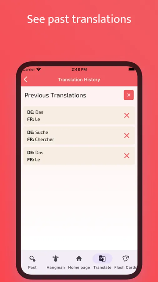 Apart from the word translations in the application, there is a hangman game so that you can better practice the language you want to learn and become more familiar with the words. We continue to work on incorporating many word games like this into the application.