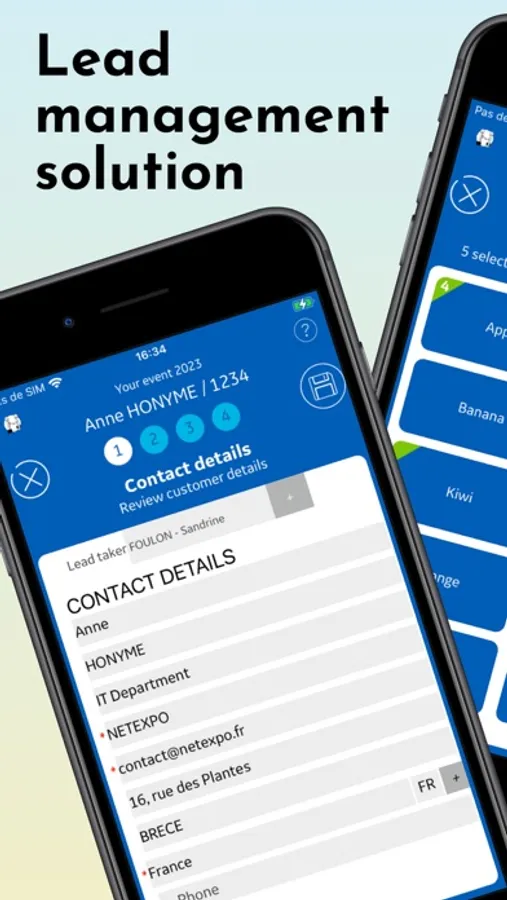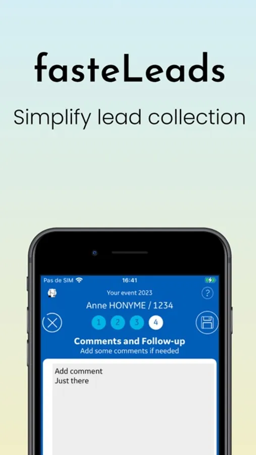 fasteLeads is a solution for exhibitors during events (like tradeshows, congresses, and shows) to easily collect contact details and products interest.