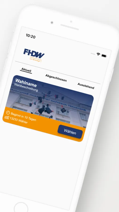 "FHDW Vote" ist eine sichere und zuverlässige Wahl-App für Wahlen und Prozesse an der FHDW. Mit unserer App können Sie bequem von überall und jederzeit abstimmen. Unsere Anwendung nutzt fortschrittliche Sicherheitstechnologien, um Ihre Stimme sicher zu übertragen und zu schützen. Sie können auch überprüfen, ob Ihre Stimme erfolgreich abgegeben wurde und die Ergebnisse verfolgen. Lade die App jetzt herunter und werde Teil des demokratischen Prozesses!