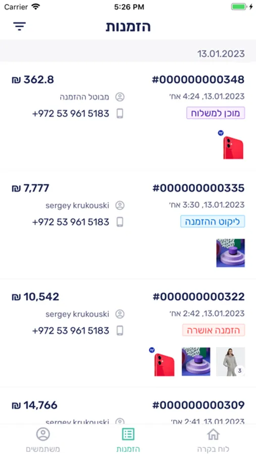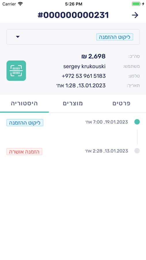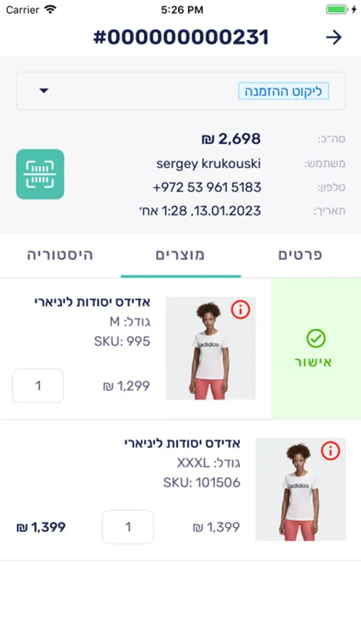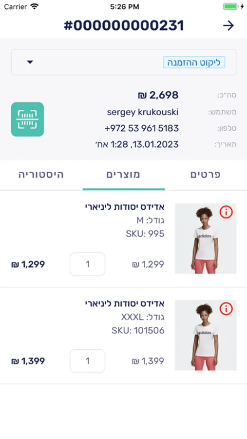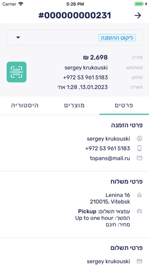 אפליקציית InClick מיועד לניהול הזמנות ולקוחות של המערכת. לאחר התקנת האפליקציה מנהל חנות אשר נוצרה בעזרת הפלטפורמה, יכול לקבל התראות על כניסה של הזמנות חדשות, לצפות בהזמנה, ללקט את המוצרים בהזמנה ולהשלים את התהליך הכנת הזמנה למשלוח על ידי סימון של מוצרים בהזמנה כי מלוקטים. לאחר השלמת ליקוט ההזמנה, מנהל חנות יכול להעביר את ההזמנה לסטטוס ״מוכנה למשלוח״ להזמין שליח לצורך הובלת ההזמנה לבית הלקוח. כמו כן בתוך האפליקציה מנה חנות יכול לראות פרטים של הזמנה כולל טלפון של הלקוח וכתובתו לצורך הכנת המשלוח, את סכום ההזמנה, סטטוס של הזמנה. במהלך טיפול בהזמנה מנהל חנות יכול לעדכן סטטוסים של הזמנה בהתאם להשלמת תהליכי טיפול בהזמנה.