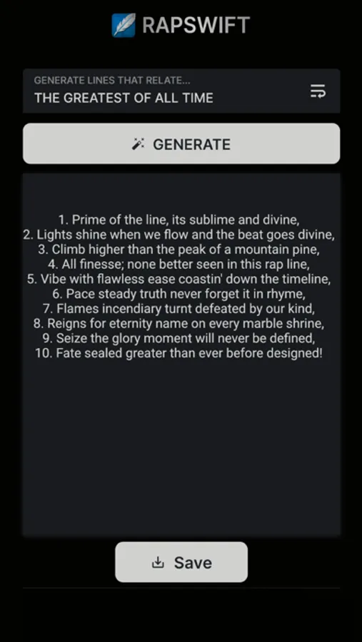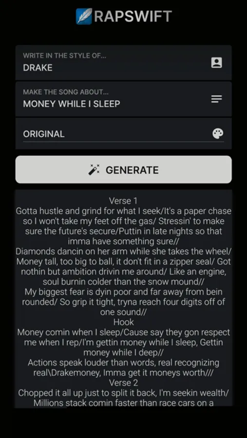 Unlock your creative potential with Rapswift, the ultimate learning tool and creative writing assistant. Its intuitive interface allows you to explore the world of rap with ease. Whether you have a specific artist, concept, or style in mind, Rapswift empowers you to input your preferences or choose from a diverse range of pre-programmed options. Designed to transform your skills, Rapswift can elevate your rap game from an F to a C+ rapper in seconds, providing rapid improvement. Additionally, it serves as an invaluable learning tool for new songwriters, guiding them through the process and helping them develop their craft. Embrace Rapswift and embark on a journey of growth and creativity in the realm of rap and songwriting.