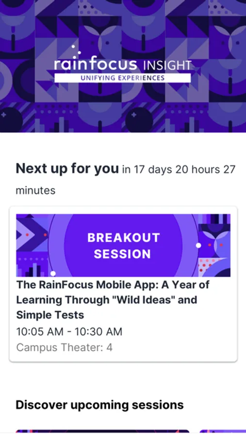 The RainFocus INSIGHT mobile app enhances your event experience by allowing you to build a custom schedule, learn about speakers and sessions, interact with exhibitors, stream live event broadcasts, and much more. Learn about the INSIGHT game and earn badges and prizes throughout the event. Push notifications ensure you won't miss any of the action throughout the three days of INSIGHT.