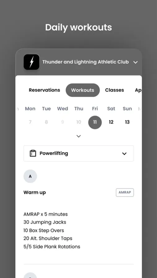 For members of Thunder and Lightning Athletic Club to reserve their place in a class, sign up for gym events, and general account management like updating headshots and credit card on file.