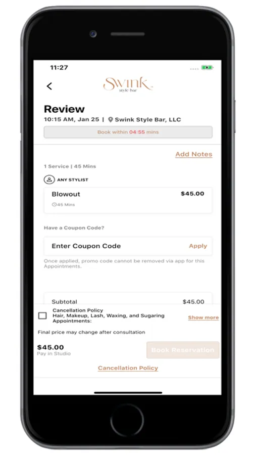 Download today to schedule, cancel or change existing appointments, view appointment history or upcoming reservations, and purchase gift cards. Check in and out from the Swink app!