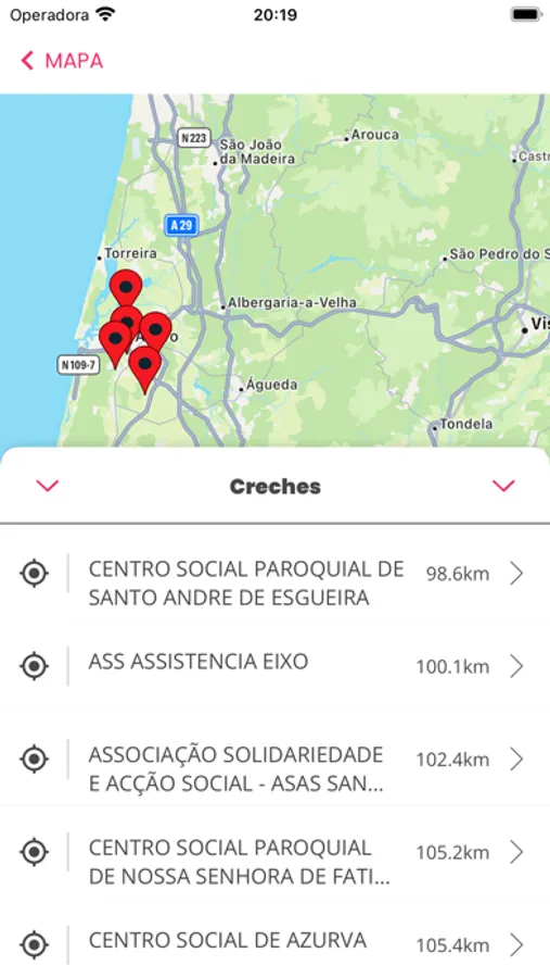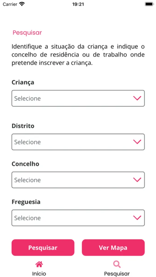 Pode pesquisar por concelho para ficar a saber quais as creches com vagas disponíveis. Ao selecionar a sala adequada à sua criança terá no seu ecrã a informação que poderá ser a porta de entrada gratuita para uma creche feliz.