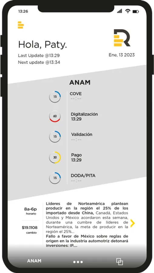 Muestra indicadores del estatus de servicios que intervienen en el comercio exterior, tales cómo servicios de Ventanilla única y de la ANAM; presentamos información de los trámites, estatus y personal disponible del grupo para atención al cliente.