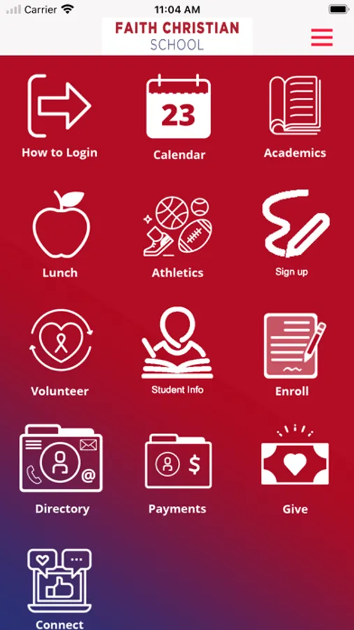 Welcome to the official app for Faith Christian School. This app is a one-stop-shop for our parents, students, and staff, with anytime, anywhere access to all the tools, content, and communications needed to stay connected and engaged. This app is our primary communication portal and provides easy access to Announcements, Calendar of Events, Student Grades and Homework, Athletics, FACTS Financial and so much more!